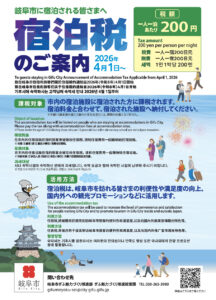 このたび岐阜市において、観光振興や魅力ある街づくりを目的とした「宿泊税」が導入されることとなりました。これに伴い、当ホテルにおきましても、2026年4月1日(水)以降のご宿泊より、以下の通り宿泊税を別途頂戴いたします。